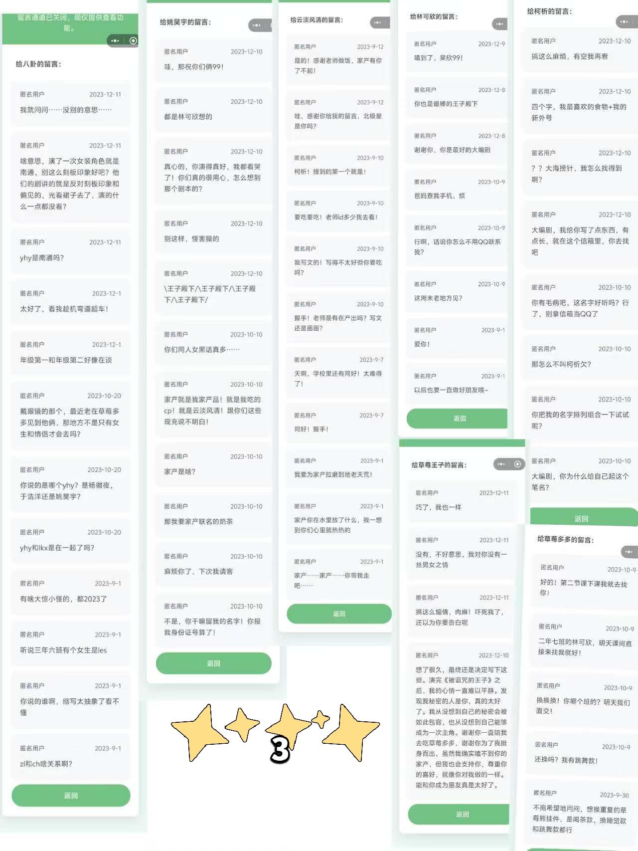 攻略不想被剧透的不要点进来…………………………第一关:程海 zl其他词:周艺博 张露 张一鸣 前男友 前女友第二关:林珊 大马猴其他词:吃瓜 马若若 mrr第三关:姚昊宇 朋友 草莓王子其他词:八卦 林可欣 杨徽夜 草莓多多 柯析 云淡风清 第四关:解谜社 谜题①其他词: 0 4 1213第五关:王虎 圆圆其他词:小白 年糕 李佳润 陈旭东 求助 李玉婷 第六关:刘宇飞