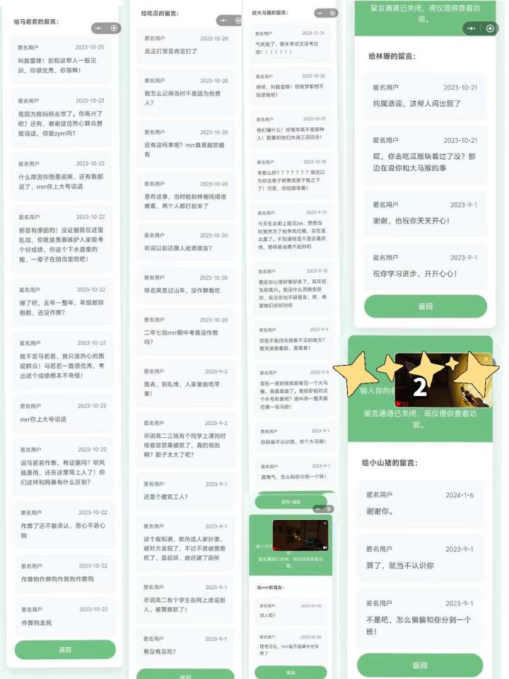 主要说一下个人在哪里卡过…………一个是第一关因为搜前女友会冒出个“早知道你不喜欢女生,你又何必勉强答应我呢”这个留言板被留言的人也可以回复且没有特殊标注,所以第一反应不是别的百合,而是觉得这段话和第一关有关联然后我就以为!张露喜欢程海,程海找张一鸣虽然都是问张露但我以为更多是去找张一鸣所以程海喜欢张一鸣,然后张一鸣喜欢张露。(于是卡了很久……)意识到缩写也能搜之后,看到里面的内容就能