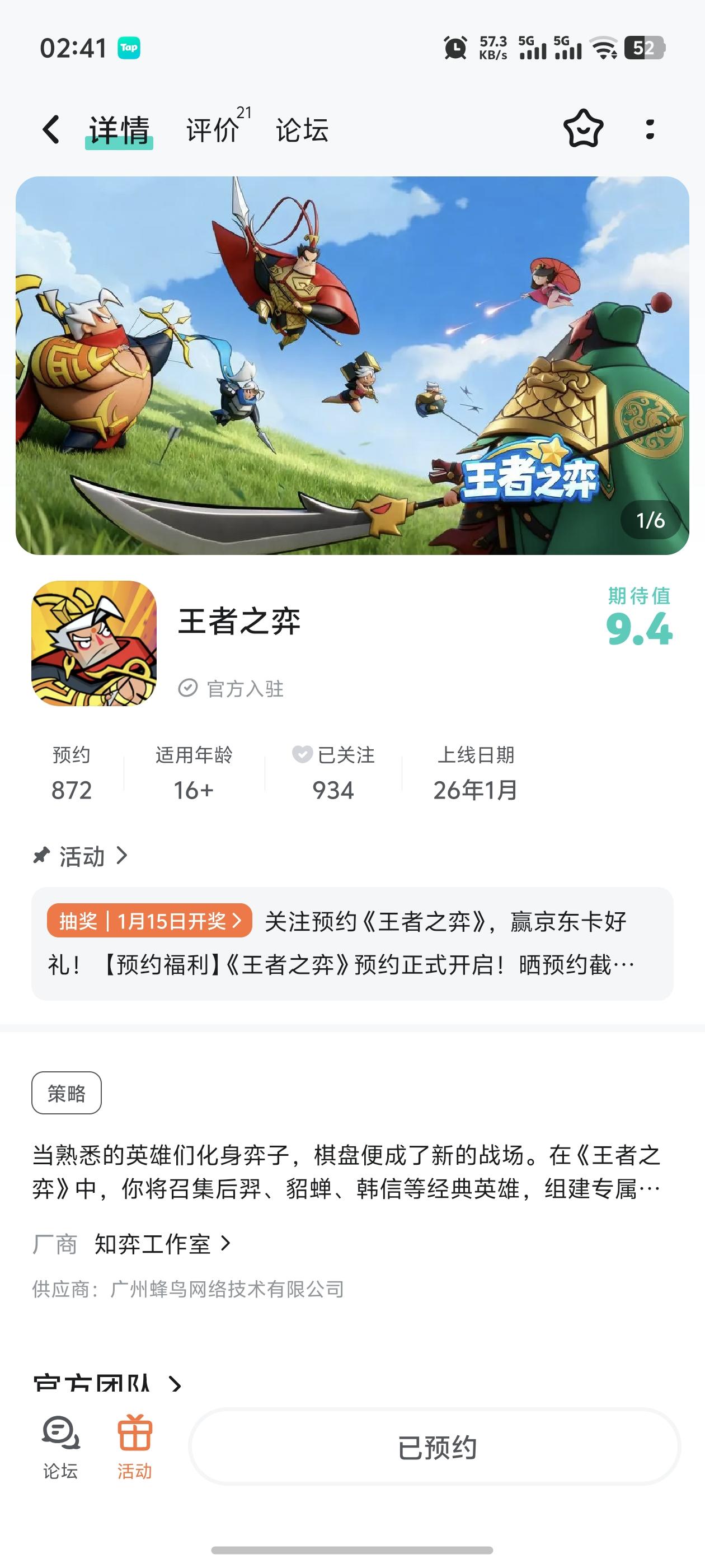 亲爱的召唤师们: 重大喜讯!自走棋策略类手游《王者之弈》在TapTap上正式开启预约啦~!峡谷萌英雄,棋坛新登场 当熟悉的英雄们化身弈子,棋盘便成了新的战场。在《王者之弈》中,你将召集后羿、貂蝉、韩信等经典英雄,组建专属阵容,在瞬息万变的对战中粉碎暗影阴谋,守护峡谷荣光。召唤师们,峡谷棋坛的号角已吹响,即刻集结英雄,用策略书写新传奇!战法刺射牧,策略随心搭 5大职业羁绊,解锁无限战术可