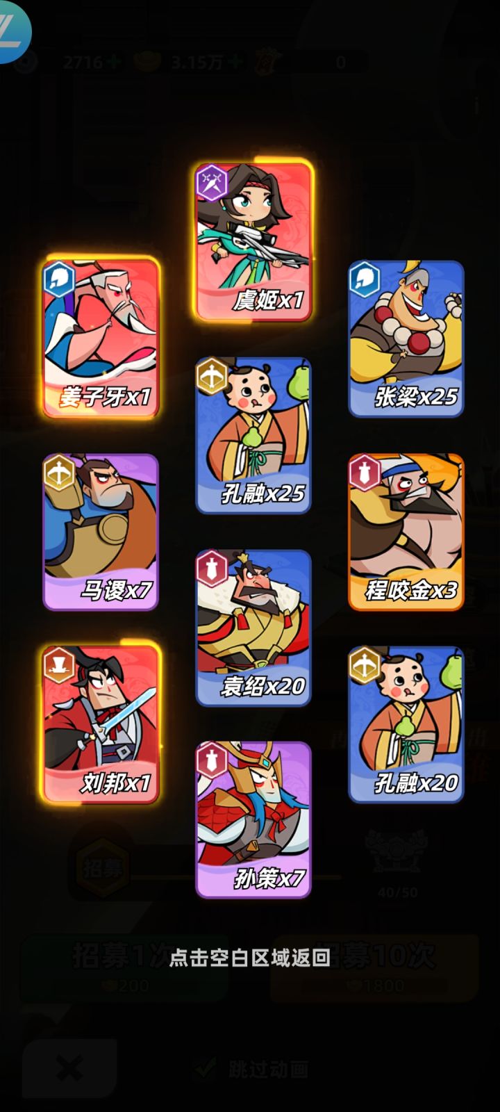 开局第一个十连固定会给红将元芳 第二章任务送孟获 这样跟马可波罗 刘备 黄忠 组射手阵容去推图 后面两个我一般上廉颇和甑洛 然后就停手 除了做任务不要抽 等到6000分刘邦解锁再抽 如果想长期玩 首冲都可以省 小月卡自选箱可以省不少事