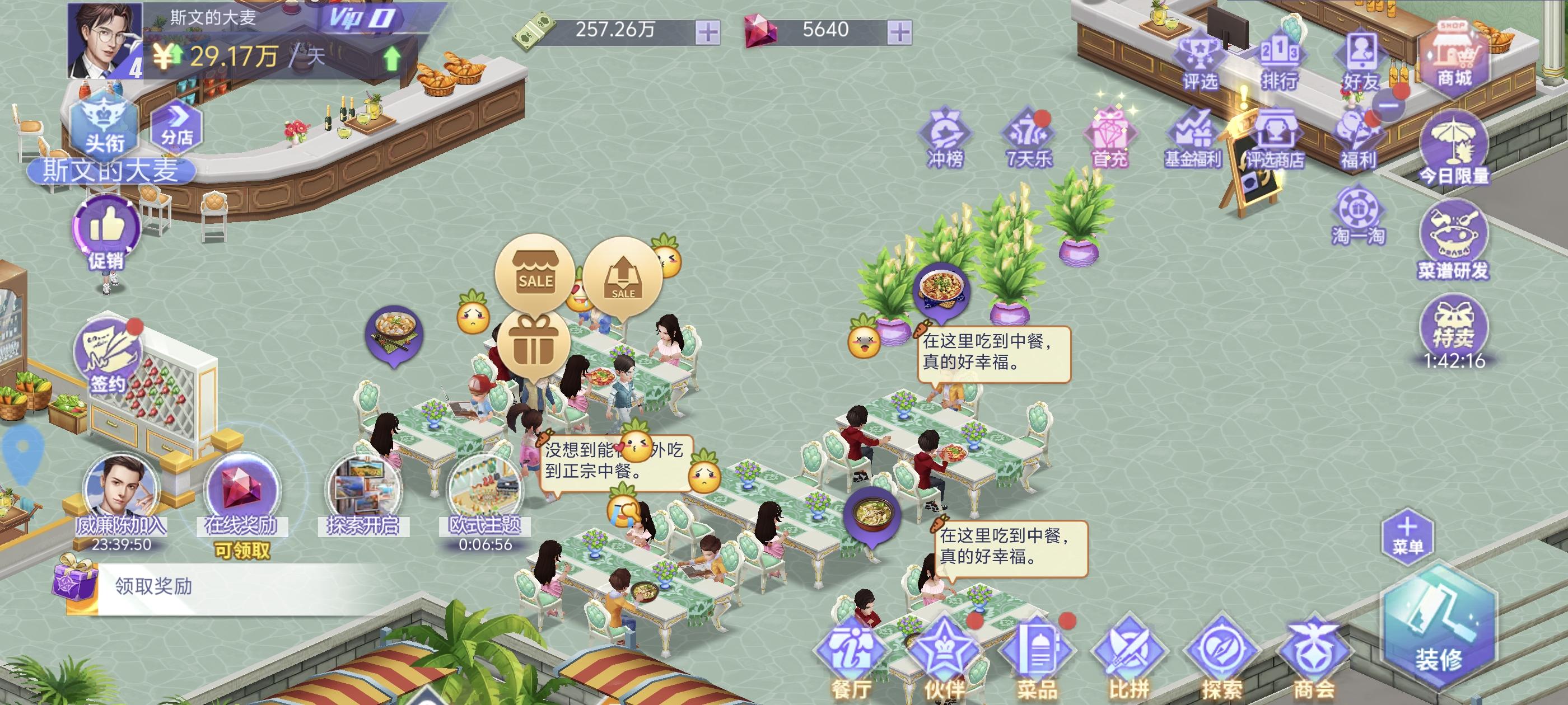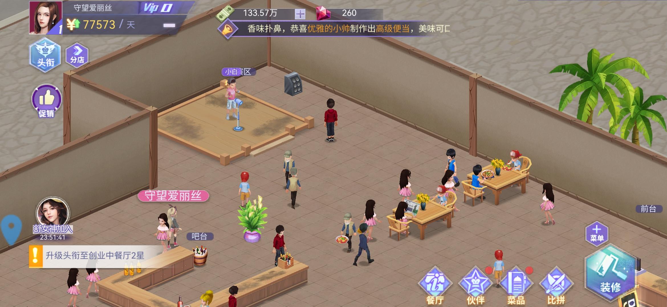 1.才开始玩这个游戏,不要把所有资源都浪费到前台、后勤、大堂人员!因为到后期可以把很多资源用到全能人才上!升到一定的头衔可以用钻石💎换人才!2.提早找好能交流的小伙伴为第三个餐厅做准备,交流很重要!菜品双方尽量不要养重复的,前期不要养国宴菜品,国宴菜品可以放到第一个或是第二个餐厅养,养好了在换到第三个餐厅里!(国宴是很难养的)商会到30级有厨艺争夺,看看会长选择哪个菜品加成,然后把菜品加成的菜系