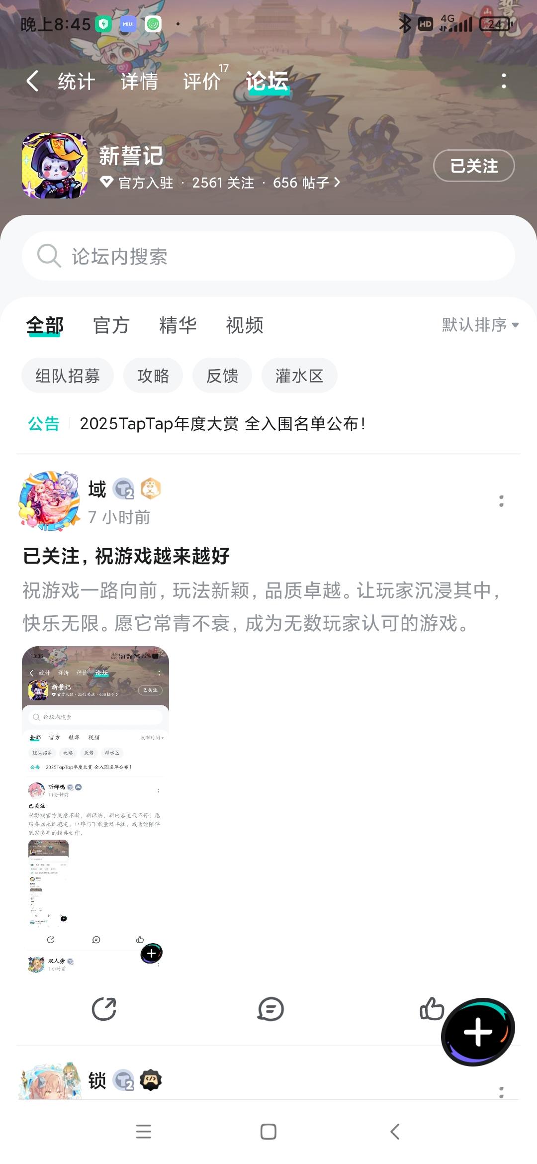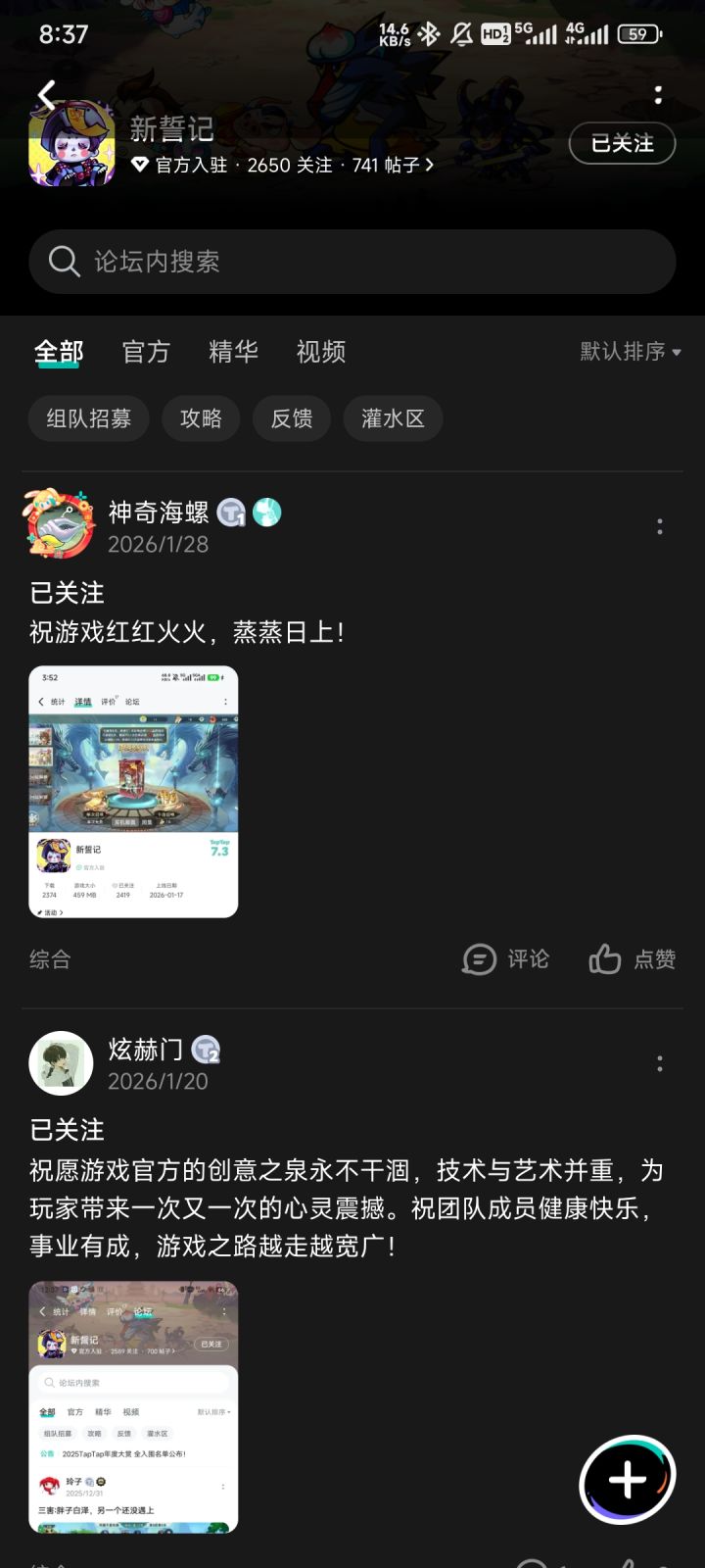 论坛专属活动已启,速来参与赢福利!发新帖晒截图,赢取京东卡好礼【参与方式】1.点击关注游戏并发新帖晒截图2.在本帖下方评论区分享发帖链接即可【活动时间】即日起至1月17日【活动奖励】随机抽取1名符合参与条件的玩家获得:50元京东卡一张【活动规则】1.内容禁止涉及暴力、色情、政治、恐怖内容,违者做删帖处理并取消活动资格;2.回复内容需与活动主题相关,若抽中楼层与主题无关则将取消