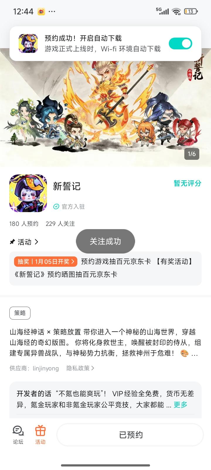 论坛专属活动已启,速来参与赢福利!预约游戏发新帖晒截图,赢百元京东卡!迎战神秘势力,拯救山海八荒!!!【参与方式】1.点击关注预约《新誓记》并发新帖晒截图2.在本帖下方评论区分享发帖链接即可【活动时间】即日起至1月5日【活动奖励】随机抽取1名符合参与条件的玩家获得:100元京东卡一张【活动规则】1.内容禁止涉及暴力、色情、政治、恐怖内容,违者做删帖处理并取消活动资格;2.回