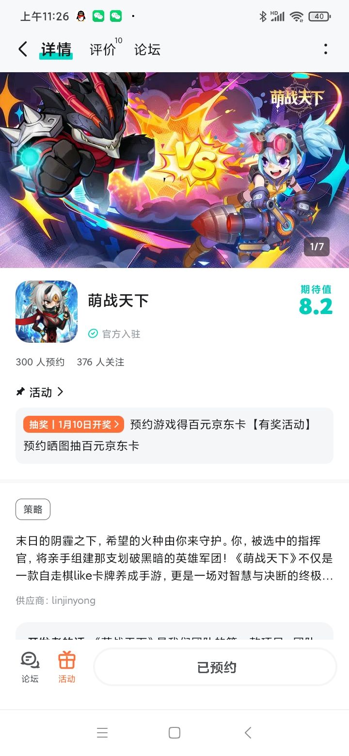 论坛专属活动已启,速来参与赢福利!预约游戏发新帖晒截图,赢百元京东卡!【参与方式】1.点击关注预约游戏并发新帖晒截图2.在本帖下方评论区分享发帖链接即可【活动时间】即日起至1月10日【活动奖励】随机抽取1名符合参与条件的玩家获得:100元京东卡一张【活动规则】1.内容禁止涉及暴力、色情、政治、恐怖内容,违者做删帖处理并取消活动资格;2.回复内容需与活动主题相关,若抽中楼层与主