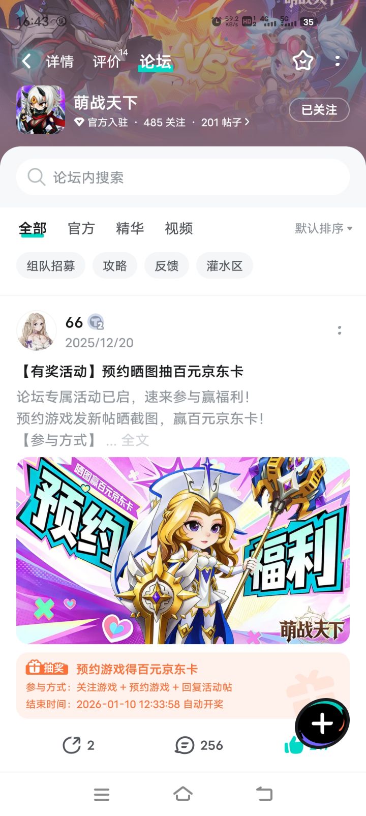 论坛专属活动已启,速来参与赢福利!预约游戏发新帖晒截图,赢百元京东卡!【参与方式】1.点击关注预约游戏并发新帖晒截图2.在本帖下方评论区分享发帖链接即可【活动时间】即日起至1月10日【活动奖励】随机抽取1名符合参与条件的玩家获得:100元京东卡一张【活动规则】1.内容禁止涉及暴力、色情、政治、恐怖内容,违者做删帖处理并取消活动资格;2.回复内容需与活动主题相关,若抽中楼层与主