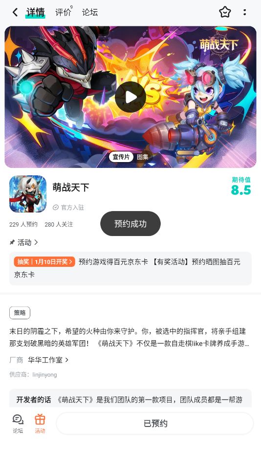 论坛专属活动已启,速来参与赢福利!预约游戏发新帖晒截图,赢百元京东卡!【参与方式】1.点击关注预约游戏并发新帖晒截图2.在本帖下方评论区分享发帖链接即可【活动时间】即日起至1月10日【活动奖励】随机抽取1名符合参与条件的玩家获得:100元京东卡一张【活动规则】1.内容禁止涉及暴力、色情、政治、恐怖内容,违者做删帖处理并取消活动资格;2.回复内容需与活动主题相关,若抽中楼层与主