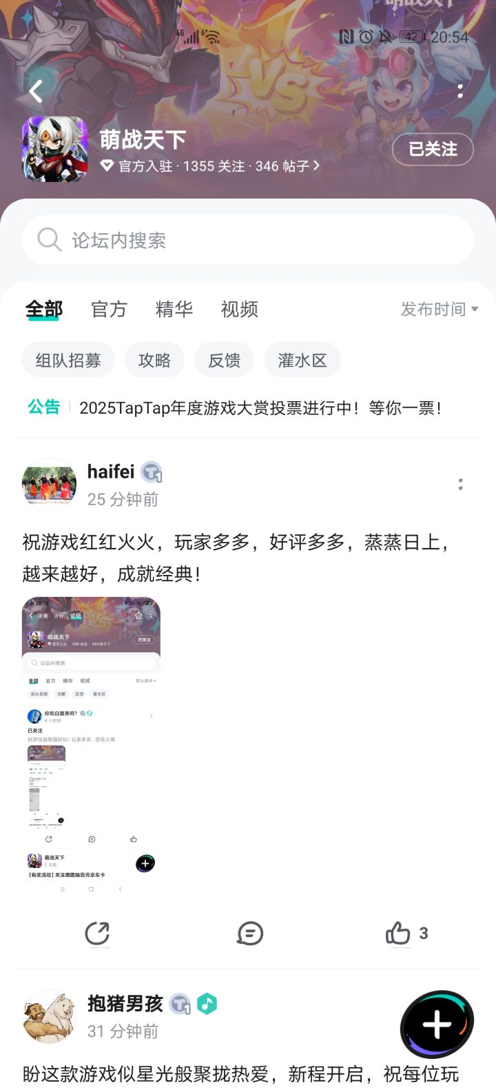 论坛专属活动已启,速来参与赢福利!预约游戏发新帖晒截图,赢百元京东卡!【参与方式】1.点击关注预约游戏并发新帖晒截图2.在本帖下方评论区分享发帖链接即可【活动时间】即日起至1月10日【活动奖励】随机抽取1名符合参与条件的玩家获得:100元京东卡一张【活动规则】1.内容禁止涉及暴力、色情、政治、恐怖内容,违者做删帖处理并取消活动资格;2.回复内容需与活动主题相关,若抽中楼层与主