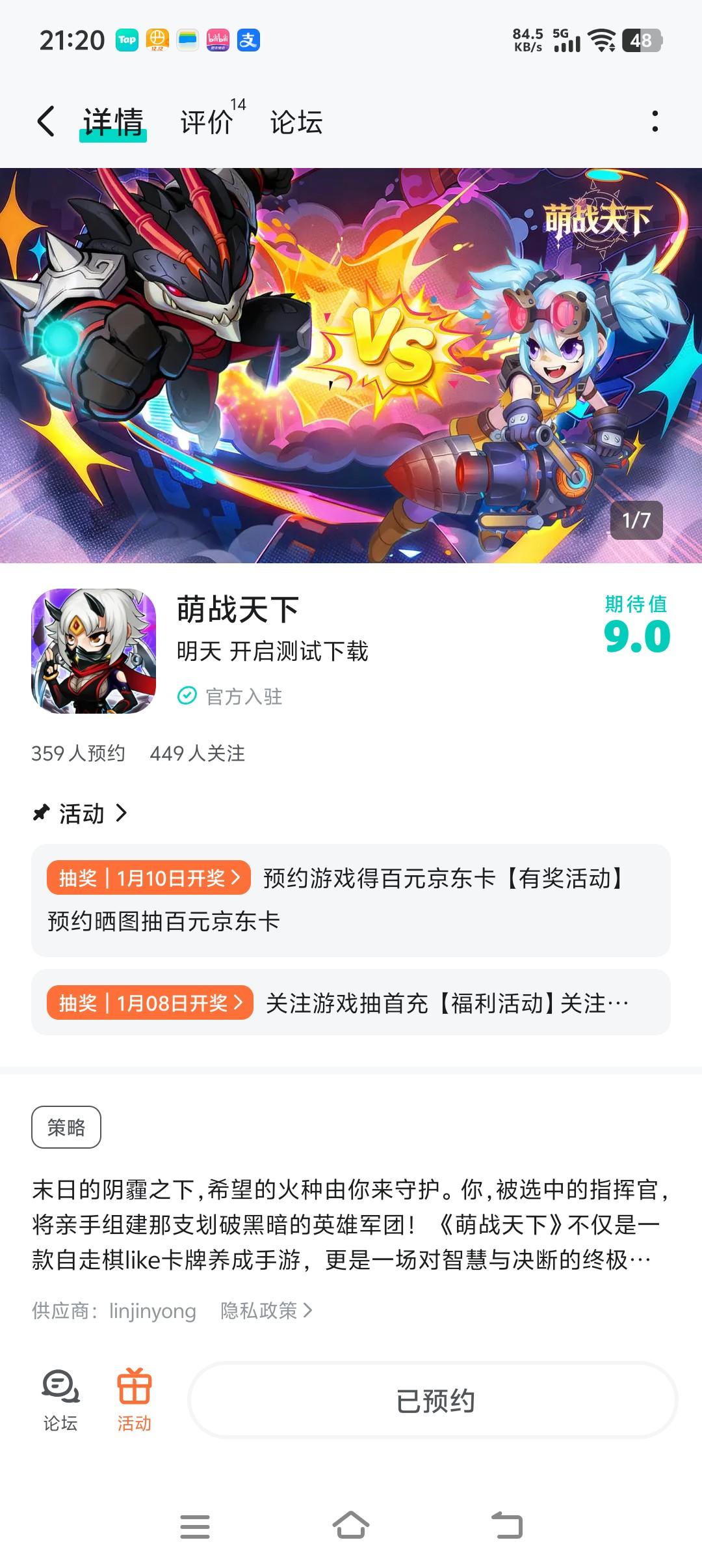 论坛专属活动已启,速来参与赢福利!预约游戏发新帖晒截图,赢百元京东卡!【参与方式】1.点击关注预约游戏并发新帖晒截图2.在本帖下方评论区分享发帖链接即可【活动时间】即日起至1月10日【活动奖励】随机抽取1名符合参与条件的玩家获得:100元京东卡一张【活动规则】1.内容禁止涉及暴力、色情、政治、恐怖内容,违者做删帖处理并取消活动资格;2.回复内容需与活动主题相关,若抽中楼层与主