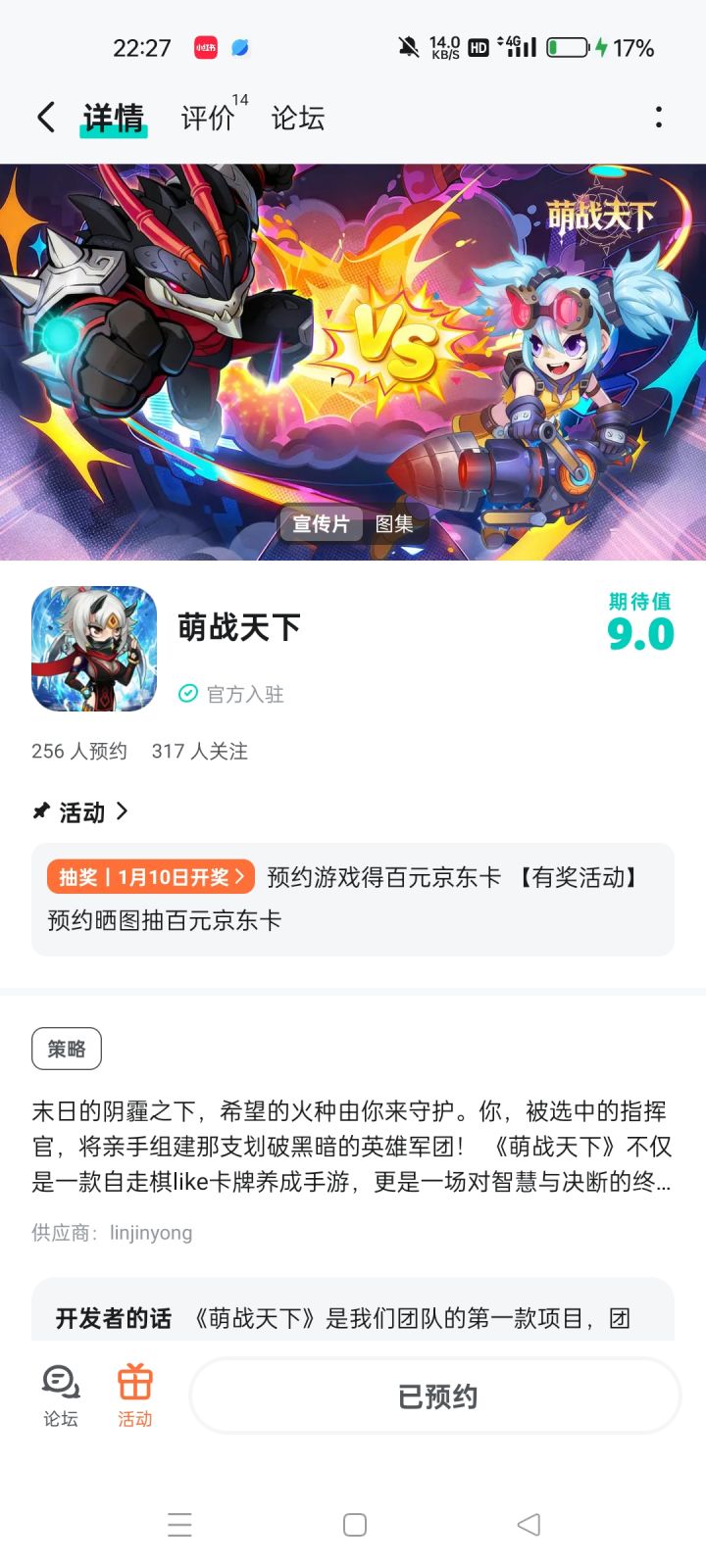 论坛专属活动已启,速来参与赢福利!预约游戏发新帖晒截图,赢百元京东卡!【参与方式】1.点击关注预约游戏并发新帖晒截图2.在本帖下方评论区分享发帖链接即可【活动时间】即日起至1月10日【活动奖励】随机抽取1名符合参与条件的玩家获得:100元京东卡一张【活动规则】1.内容禁止涉及暴力、色情、政治、恐怖内容,违者做删帖处理并取消活动资格;2.回复内容需与活动主题相关,若抽中楼层与主