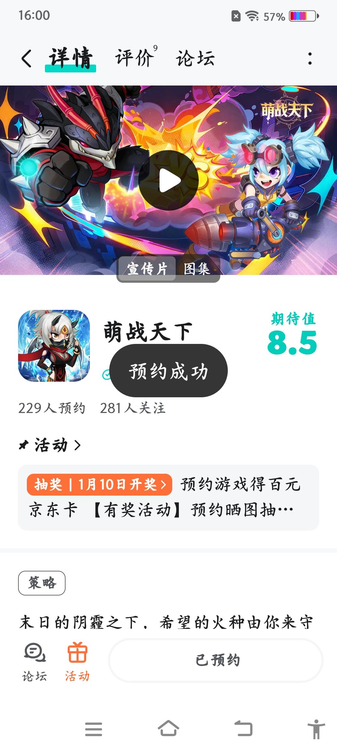 论坛专属活动已启,速来参与赢福利!预约游戏发新帖晒截图,赢百元京东卡!【参与方式】1.点击关注预约游戏并发新帖晒截图2.在本帖下方评论区分享发帖链接即可【活动时间】即日起至1月10日【活动奖励】随机抽取1名符合参与条件的玩家获得:100元京东卡一张【活动规则】1.内容禁止涉及暴力、色情、政治、恐怖内容,违者做删帖处理并取消活动资格;2.回复内容需与活动主题相关,若抽中楼层与主