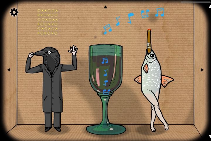 1.熏鱼:把【雪茄】放到有腿的鱼嘴里2.藏猫猫:用【刀】戳拼图处鸟阴影的嘴部,撕开墙纸3.多米诺大师:完成多米诺骨牌小游戏4.重回盒中:调整黄色瓜上的钩子,进入旋梯,点击里面的盒子5.你死啦!:点击房顶,看到小黑人6.逃离盒子:往小黑人身上放三只萤火虫7.羽毛:调完杯子的旋律后,先点击房顶的鸟,掉落羽毛8.熟悉的旋律:用在逃离方块:剧院中的乐谱先在梳子上弹奏(乐谱:C C丨D #D