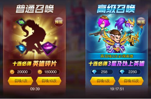 在游戏开局最多十连一次因为第一次必得四星英雄.这个游戏对英雄看的不是很重要,重要的是魔纹.只要魔纹等级够高就是开局的五小强别人都打不过你。 新手由于前面几天感觉不到魔纹的重要性,只要钻石够十连了立马用掉。你这样已经走入歧途,开局四星英雄多了前面十天半月的确很好耍,可是过后呢?魔纹可以用到关服你英雄可以吗?只要玩个十来天运气好就可以一队四星英雄了,而且经常有公会冲榜送十连劵根本不需要花钻石去十连。