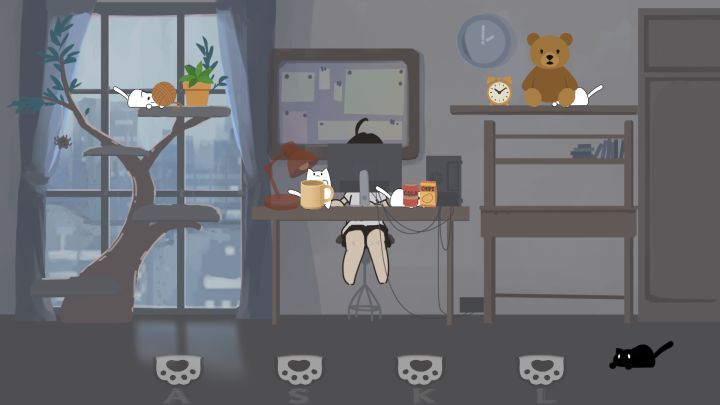 题材设定与聚光的主题关联性不强,猫猫扒拉掉东西在日常生活中也很常见,不算是BUG一类的设定。剧情对白也非常简单,仅介绍了一下猫猫行为,连基础操作也未提及。