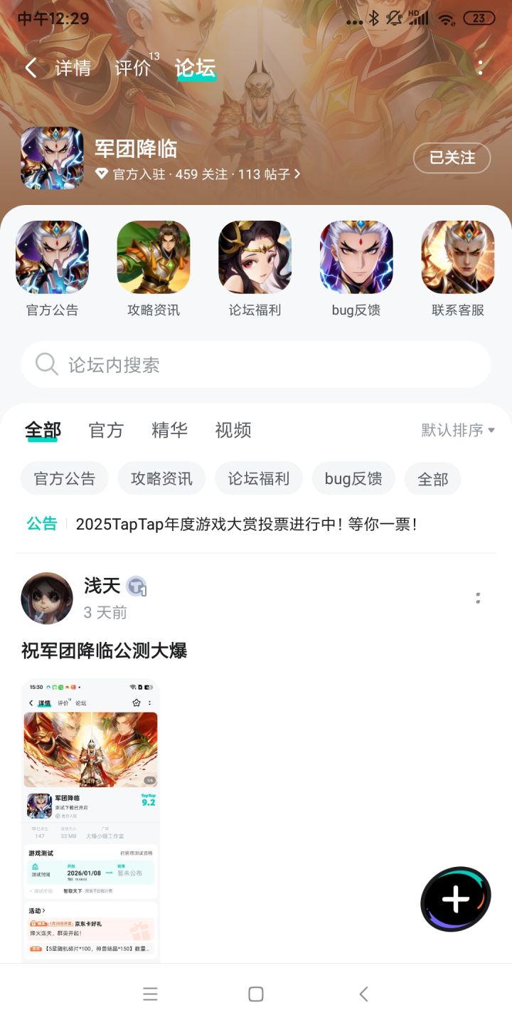 烽火连天,群英并起!年度策略卡牌《军团降临》正式开服!诚邀您执掌天命,招募名将,运筹帷幄,在这风云变幻的乱世中,书写属于自己的传奇史诗!🎁 开测专属福利:【京东卡抽奖活动】▶ 参与方式1.点击关注发帖账号和《军团降临》且发新帖晒截图2.在本帖下方评论区分享发帖链接即可【奖品发放】到达开奖时间后,由taptap系统随机抽取符合要求的幸运玩家,自动发放兑换码(对于同一账号大量故意发布评论刷