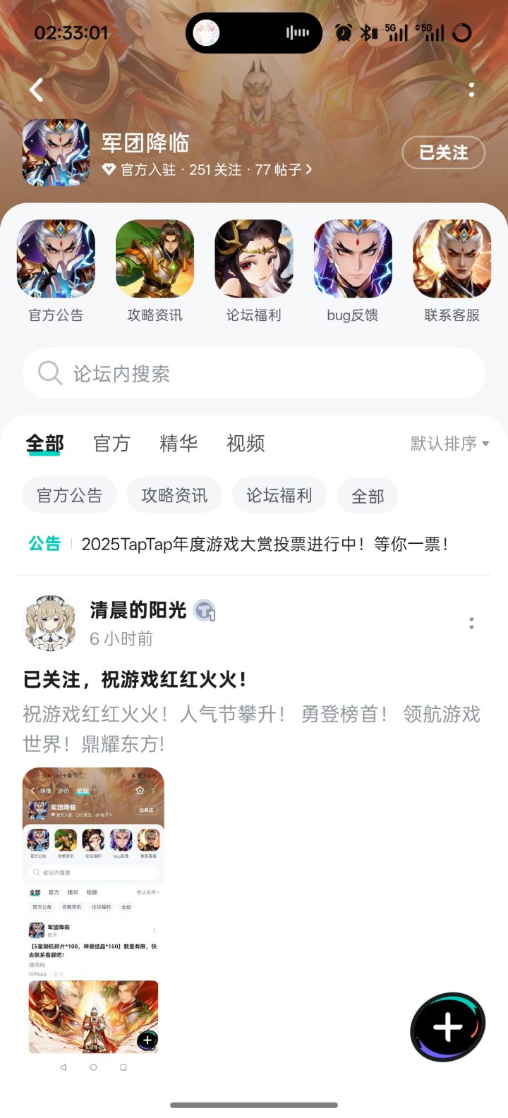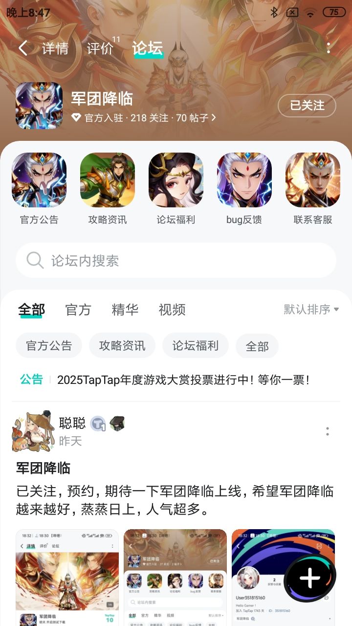 烽火连天,群英并起!年度策略卡牌《军团降临》正式开服!诚邀您执掌天命,招募名将,运筹帷幄,在这风云变幻的乱世中,书写属于自己的传奇史诗!🎁 开测专属福利:【京东卡抽奖活动】▶ 参与方式1.点击关注发帖账号和《军团降临》且发新帖晒截图2.在本帖下方评论区分享发帖链接即可【奖品发放】到达开奖时间后,由taptap系统随机抽取符合要求的幸运玩家,自动发放兑换码(对于同一账号大量故意发布评论刷