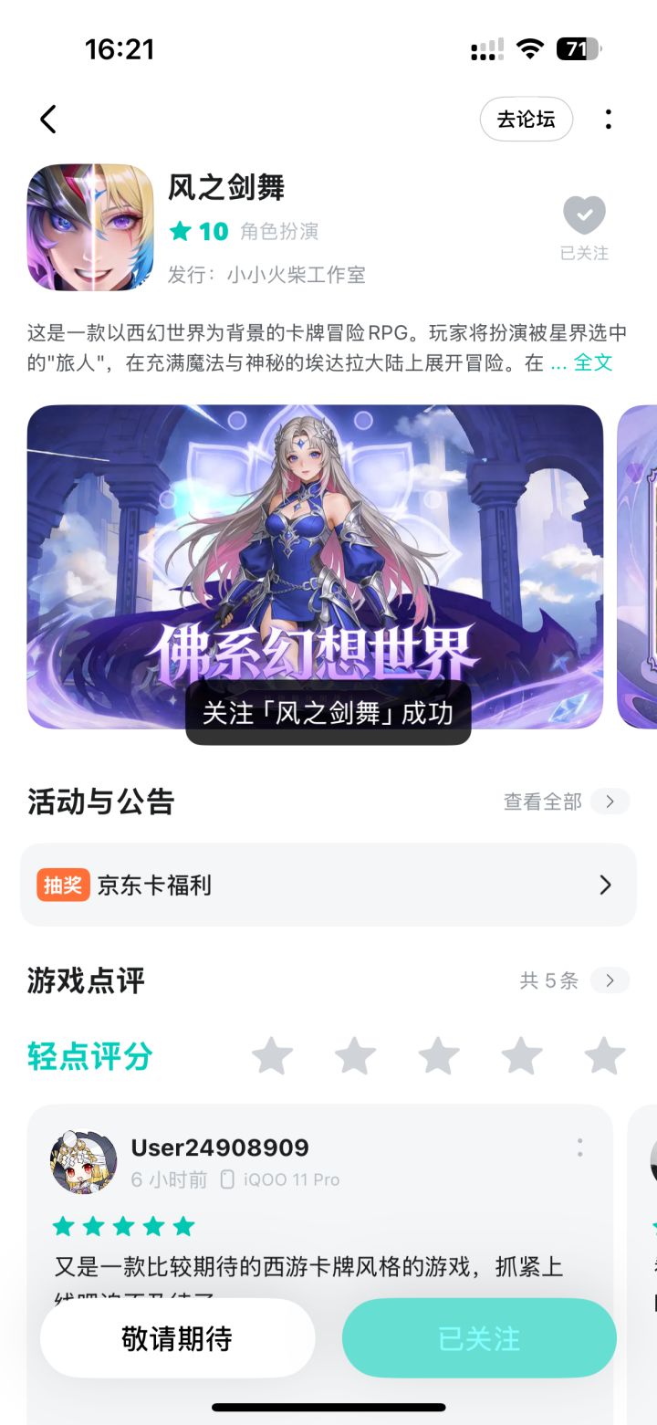 已关注,祝游戏越来越好