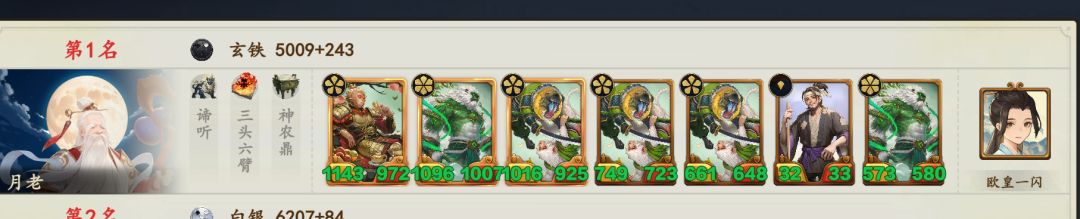 uid 4128604291072 我真不该开局把铜钱都用来买卡包 只玩了一天,谈谈自己的想法,只谈三界棋,花果山上限第一,灵山第二,成型阵容可以看图片 其他势力都没有第一的资格,大圣,我推荐金池长老,不用买一级棋子,可以直接上本。和斗战胜佛,可以更好的配合花果山,前期记得只拿护盾棋子就可以, 第二天,又有了不同的想法,狮驼铃可以养的比花果山更快,见图, 龙宫应该是上限最高,为了应对灵山的biu