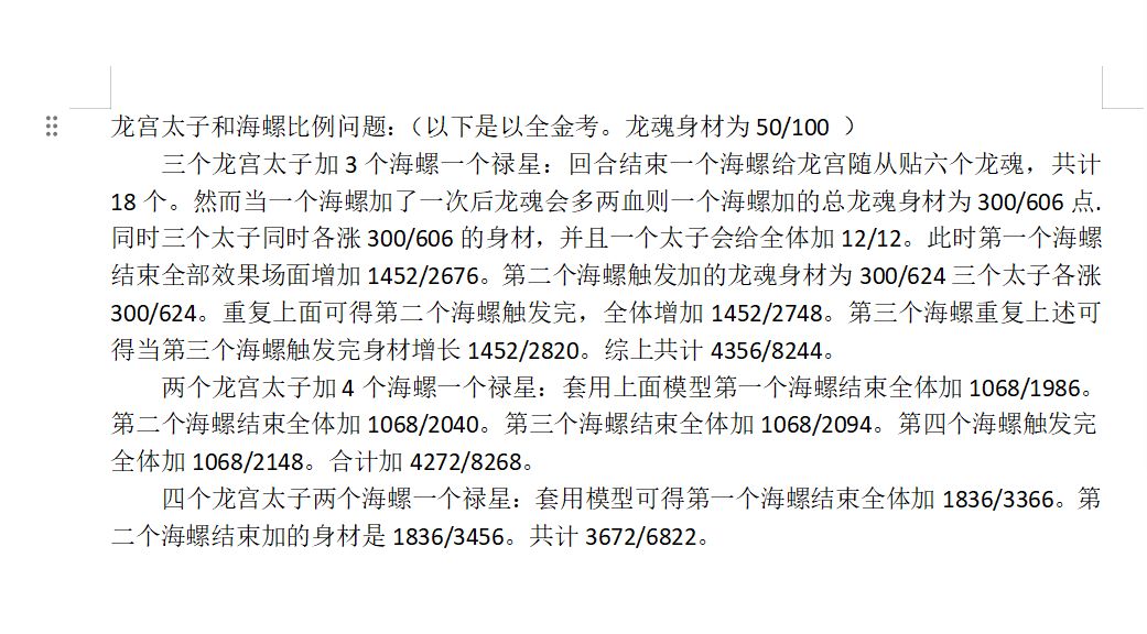 首先龙宫是要养龙魂的,不养龙魂的龙宫打不过花果山和狮驼岭是正常的,甚至打不过会玩的灵山也是很正常的事情。 而养龙魂靠什么?虾兵,蟹将,海螺?想多了。 养龙魂靠的是鱼总兵,排阵学图二就行双金鱼总兵中间加一个金小鼍龙,血多极限一点可以把海螺下了接着上这俩玩意,后面挂金福星,金禄星。理论上最高成长是3金鱼总兵夹2金小鼍龙,一回合能出发金鱼总兵登场36次加龙魂+72+108,然后镇元子是打龙宫最强的,例如