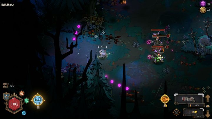 2D卡通画风,界面结构简洁,UI品质较高。整体色调偏暗,具有魔幻题材的设定特点。角色造型很别致,头盔看起来像水桶一样,跑路动作稍显滑稽,第一眼印象比较深。怪物种类多,攻击方式也千奇百怪,效果上可以一一对应。