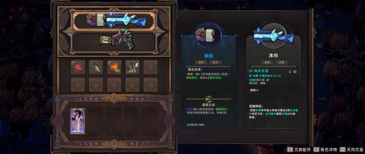 同其他肉鸽游戏一样,单局时间略长,大概20-30分钟一局。局内养成包括两把武器和枪头的更换、十个道具位置、五个命运位置,都可以产生强化效果。
