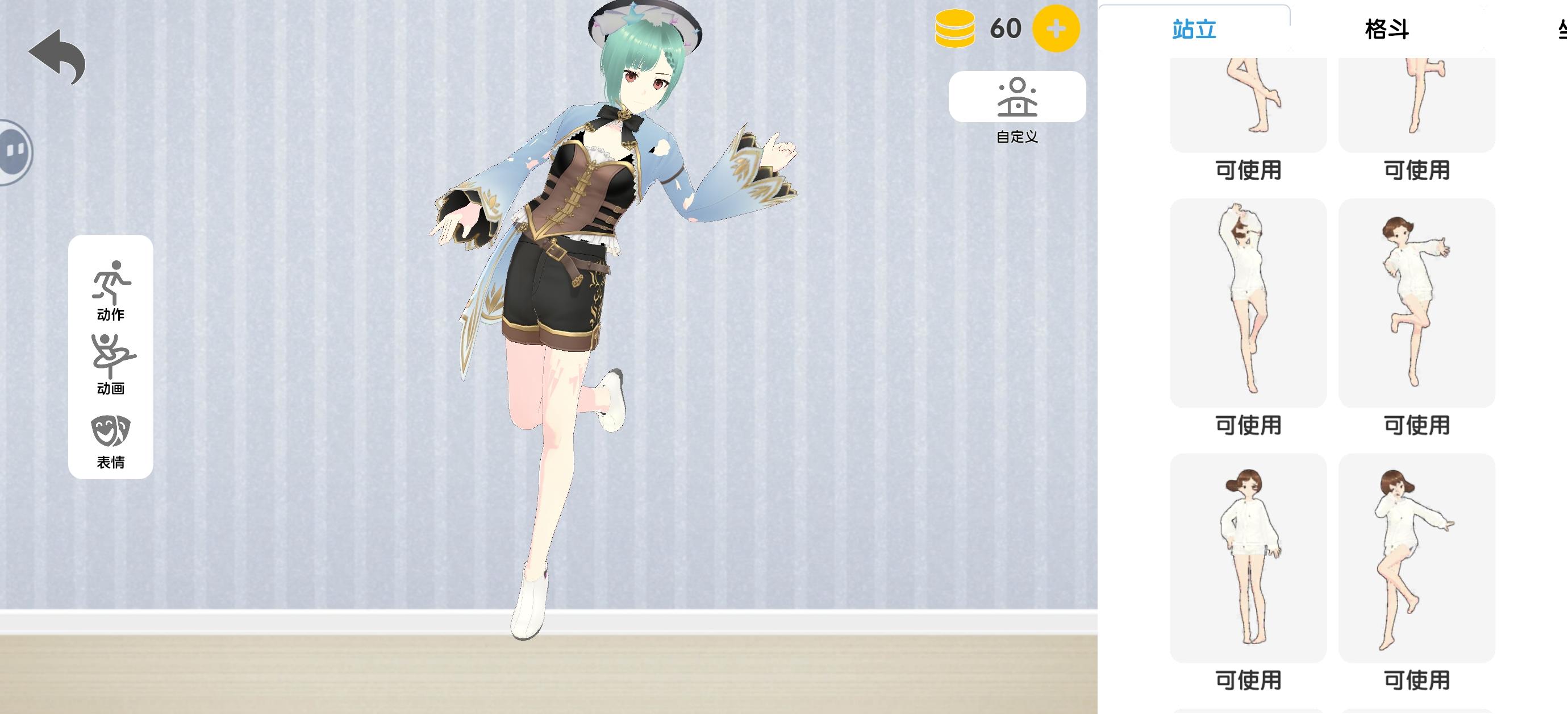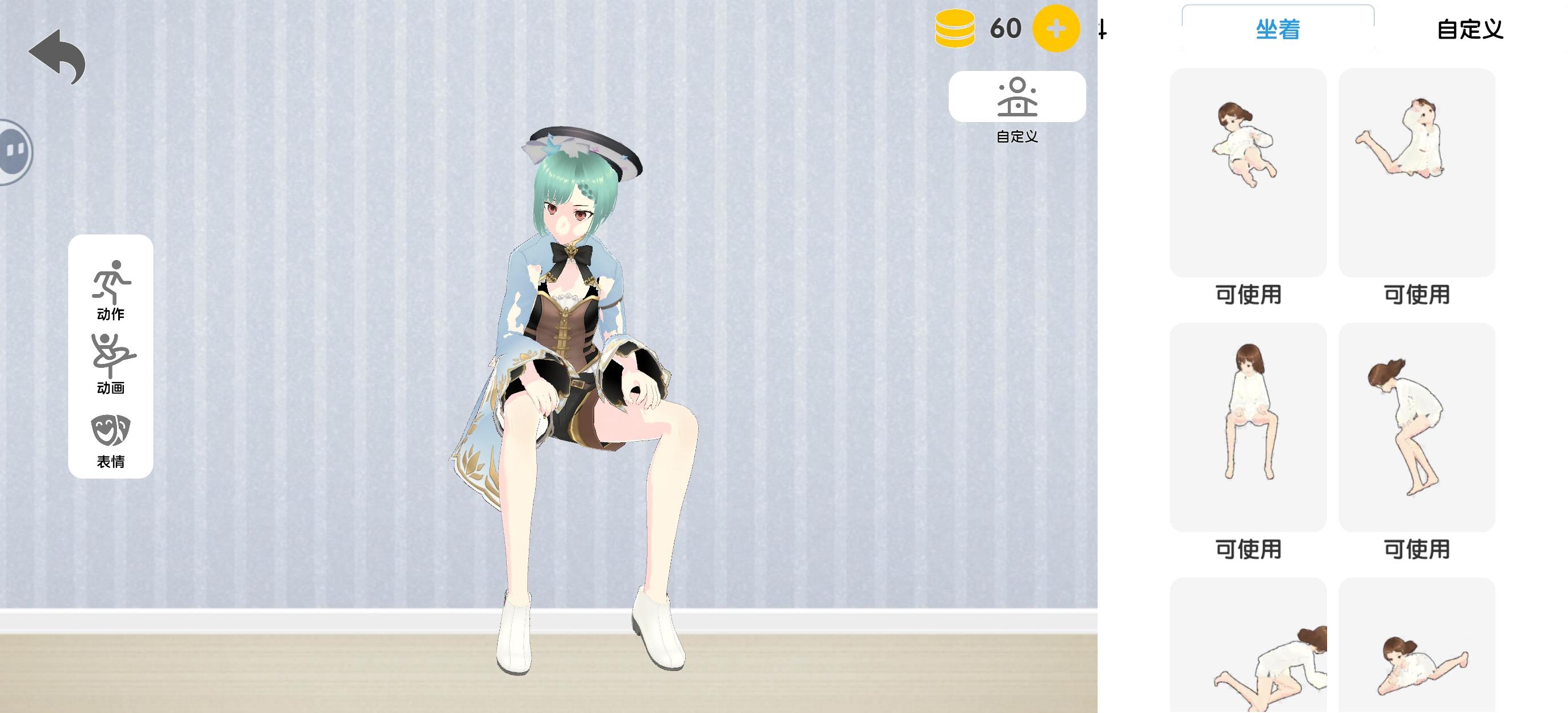 可捏脸、可换装、可自行改变动作、可修房子和互动、可拍照调滤镜、可多角色一起拍……老实说能玩的其实挺多,但是金币少。捏脸要金币,换装要金币,动作要金币,房子装修也要金币。但每天就那么点金币,购买时还是点到了就直接买了,有时候误触自己不喜欢的东西,金币就溜走了,下一个喜欢的就要看广告才能拿下了(商店一次广告两个币)。动作自定义目前有问题,自定义点击某个关节后相邻关节就会软趴趴的跟没骨头一样,不清楚是绑定问题还是故意做成这种的,角色在房间内也没看到在哪儿能换装,是用衣柜换装吗?(暂时没钱买)总而言之可玩性其实很强,只是有些令人发笑的“bug”或者“特性”。