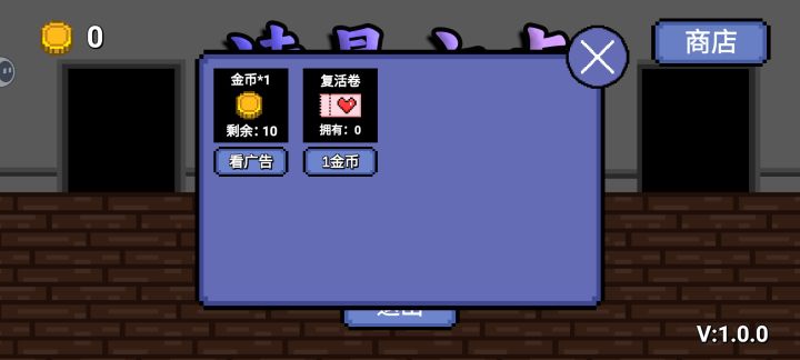 广告变现,只有看广告得金币一个广告点,且是激励视频,可以选择不看,没有讨厌的插屏和常驻广告打断游戏体验。看一个广告得1金币,只能用来买复活卷,只能看10次广告,也是挺佛系的。