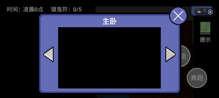 单机休闲小游戏,躲避女鬼的追赶,收集到足够数量的镇鬼符并坚持到凌晨六点即可获胜。房子空间非常大,镇鬼符被藏在不同的房间内,需要进行探索才能收集全。场景中有可以躲避的空间,需要读条两秒才能进入,相当于安全区,但在里面是无法看到外面情况的,有一定行动策略。