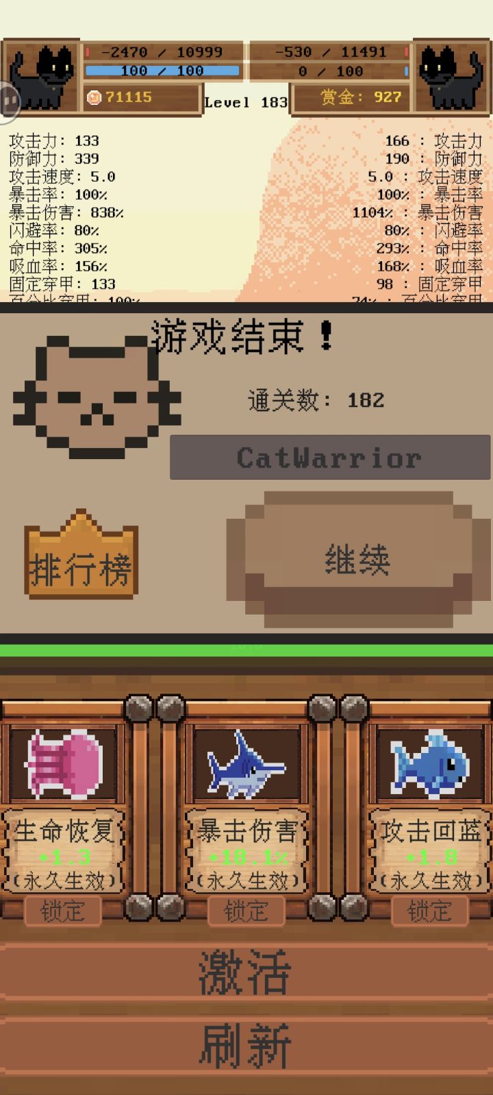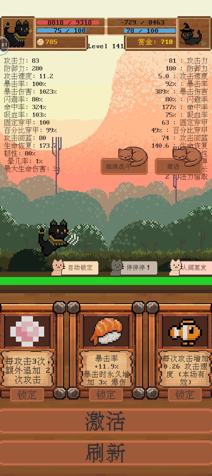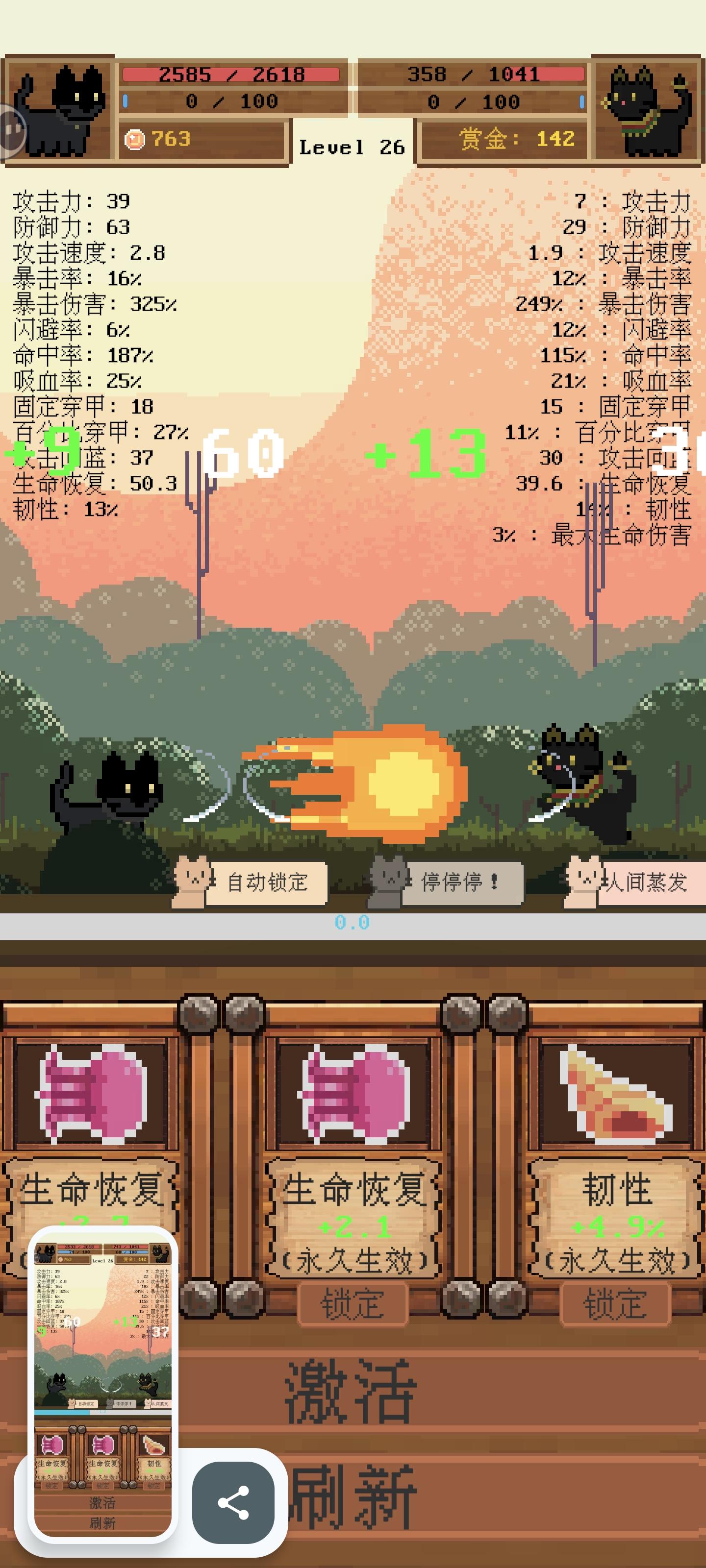 玩到后面除了遇到黑猫不然基本都是秒杀对面的,对上黑猫双方血条就搁那疯狂抽搐,最后同归于尽了,还是初始的黑猫厉害