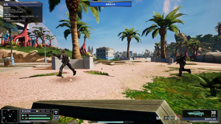 射击的手感倒是挺怪的,打击感比较薄弱,音效可以,但后坐力是一跳一跳的,根本没有要压强的痕迹,而且备弹比较少,打一只普通的虫子都需要半个弹夹,经常性的需要补充弹药。虫族的AI有点智能,直接锁定玩家,如果躲在掩体后面,也还是能打到,玩家比较难加血,如果失败的话,还得重来,这一点倒是挺烦的。