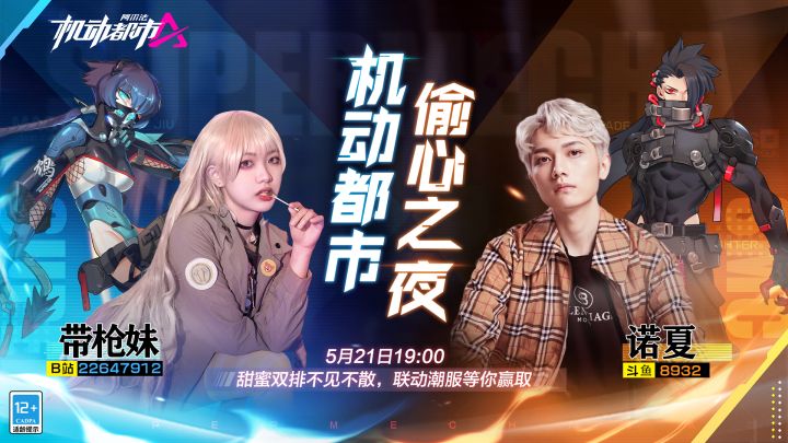 偷心之夜,甜蜜双排。刺客夜袭,杀手出动!今晚7点,锁定主播直播间:带枪妹【b站:22647912】,诺夏【斗鱼:8932】,联动潮服等你赢取!