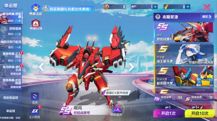 燃烧热血,引爆信念火焰飞跃极限,撕裂维度空间轰轰烈烈,跨越十万年只有超兽战士,永远不终结!联动奖池——“超兽武装”返场确认!阿卡夏SS级连携机甲【超兽神四合体】、仙女座S级连携机甲【凤羽神】、千飓S级连携机甲【超兽神二合体】及奖池专属武器载具外观将于9月30日上线返场奖池!*注意:返场奖池的抽奖次数将重新计算,返场兑换将使用全新的兑换币。奖池开启后,10级以上的选手前四日登陆游戏可在礼