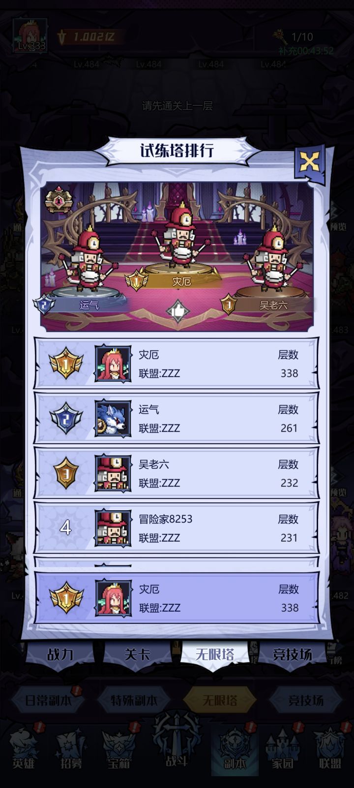 战力差我那么多,塔的层数只差我几十层。别的游戏按我的战力至少能多推几百层这个无限塔一定是针对氪佬调整了关卡难度#攻略 #童话奇遇记 #阵容