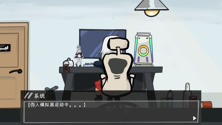 最开始看到“伪人模拟器”这个标题就挺好奇的,宣传图里俩女角色也是让人开始瞎想,猜想着是感人、恐怖还是温情的故事,实际玩下来才发现是套娃式的剧情设定,创意十足。 本作是款将视觉小说与音游相结合的剧情向游戏,核心围绕“人类玩伪人模拟器,模拟器中的伪人玩人类模拟器”的套娃设定展开,通过伪人模仿人类情感的主线,串联起压抑的人类女孩故事与诡异又带点搞笑的伪人视角,营造出独特的伪人题材氛围。