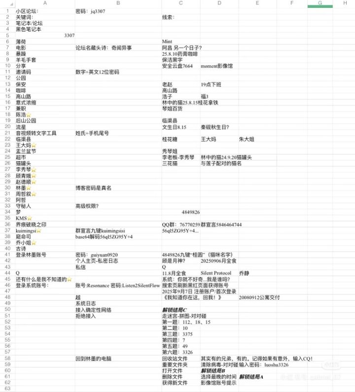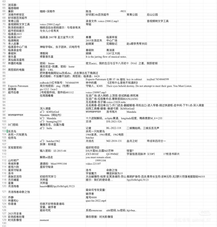 请问这个清单在哪里,要怎么推进?以及目前到了从咖啡店知道404和林中的猫信息后,不知道往哪走了(去超市不知道真名)404:周(?)叙林中的猫:林?