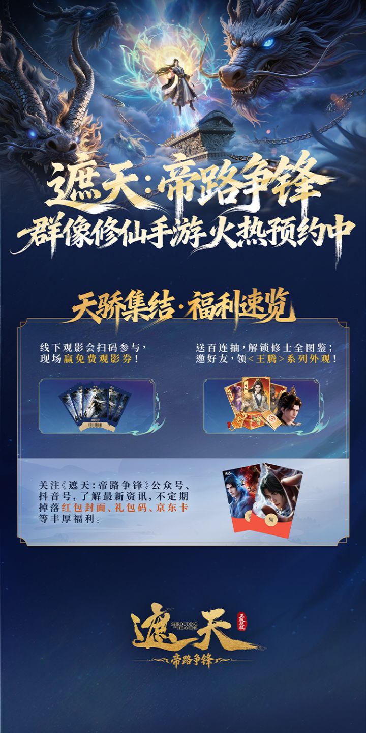 遮天剧场版《背棺战王腾》线下观影会今日开启!成都、北京、上海三城将提前开启这场帝路之约!参与预抽卡 赢免费观影券我们的线下预抽卡活动也将同步开启!扫描现场海报二维码,进入预抽卡活动,免费观影券等你来拿!还有修士全图鉴、王腾系列外观等待解锁~无法去到线下的道友也能在线上同步参与,前往微信搜索“遮天帝路争锋资讯站”小程序,点击立即参与即可。【机缘降临:预约抽观影券、红包封面】【活动时间】20
