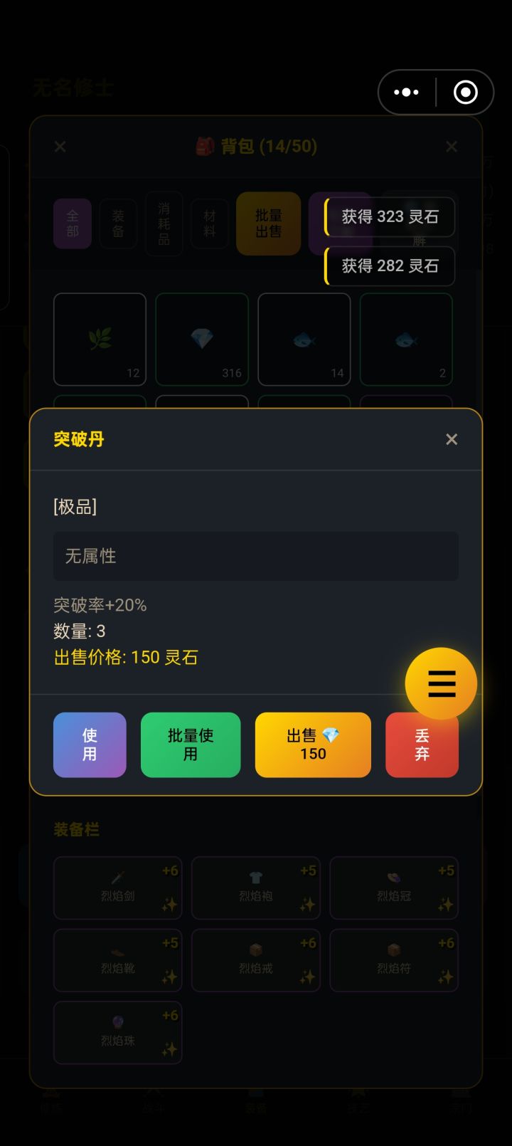 作者加油,慢慢做新的有意思的功能,以及增加一下灵兽的获取,肝到化神都没解锁灵兽一个,略显奇怪。