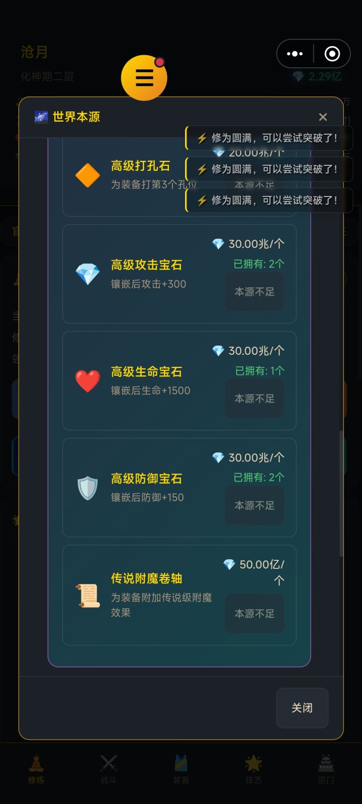 作者加油,慢慢做新的有意思的功能,以及增加一下灵兽的获取,肝到化神都没解锁灵兽一个,略显奇怪。