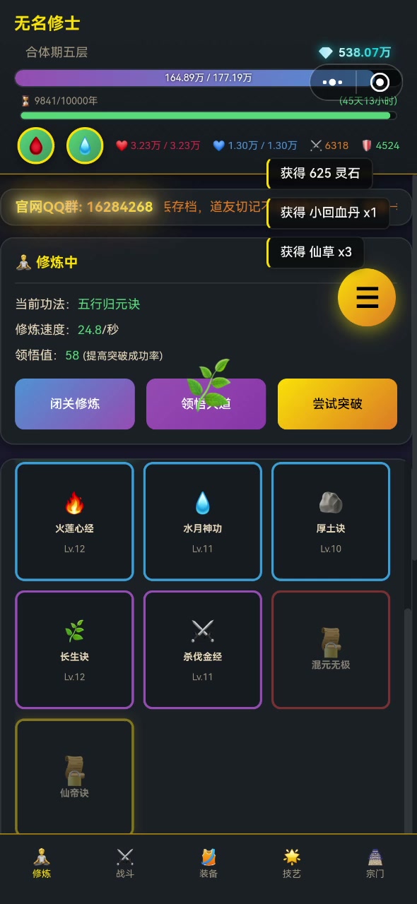 这是一款明了修仙的小游戏, 内容很多,可以打怪获得修为,有装备强化, 可以采药,挖矿,狩猎,材料都是自己获得。 加群还有群主发的福利,免费白嫖会员等级。 快来一起玩吧!!! 这是一款明了修仙的小游戏, 内容很多,可以打怪获得修为,有装备强化, 可以采药,挖矿,狩猎,材料都是自己获得。 加群还有群主发的福利,免费白嫖会员等级。 快来一起玩吧!!!