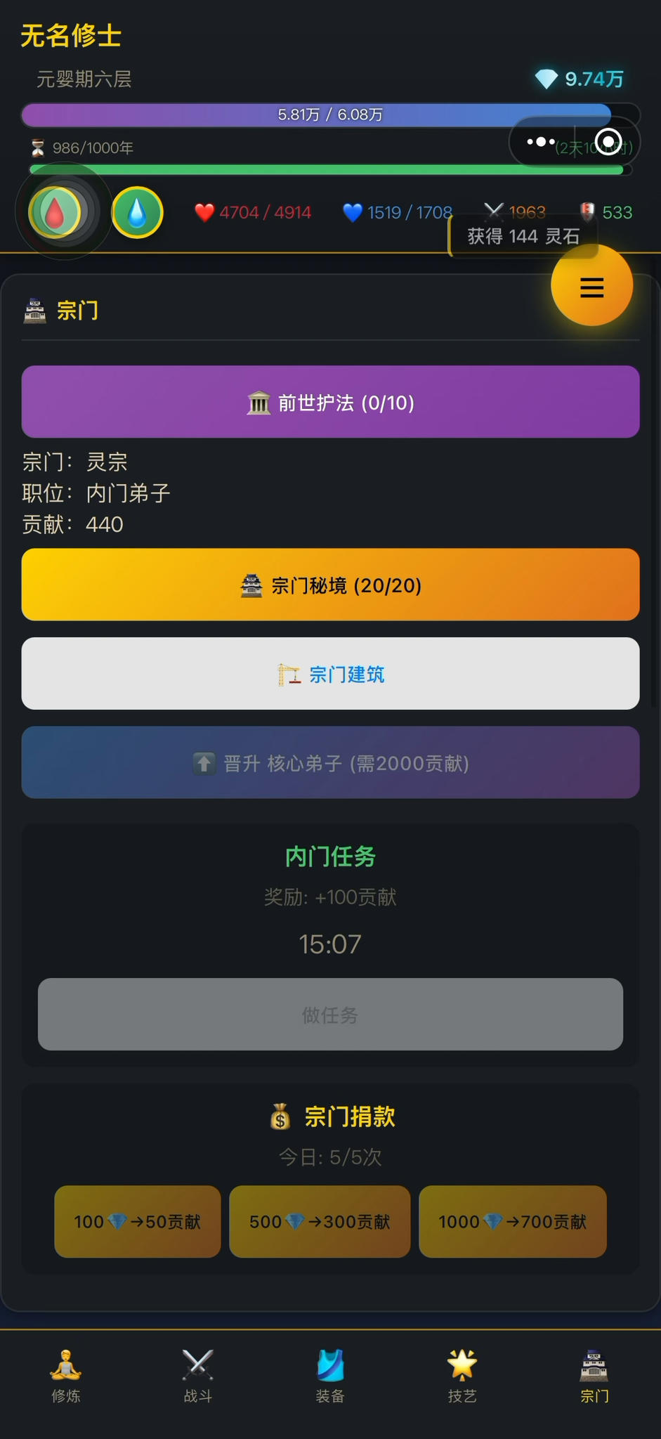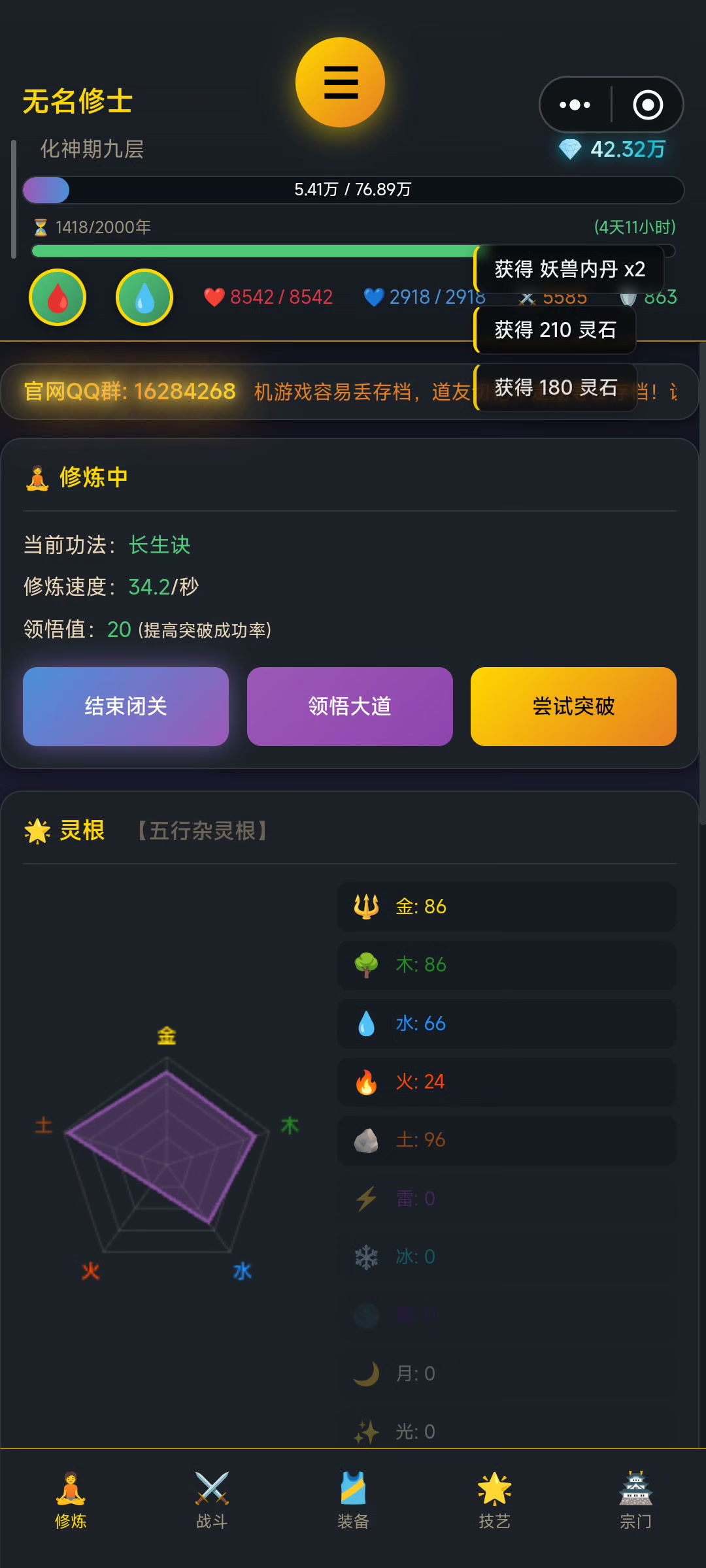 可以边打坐边打怪还能发展副职 还有道侣 还有灵宠