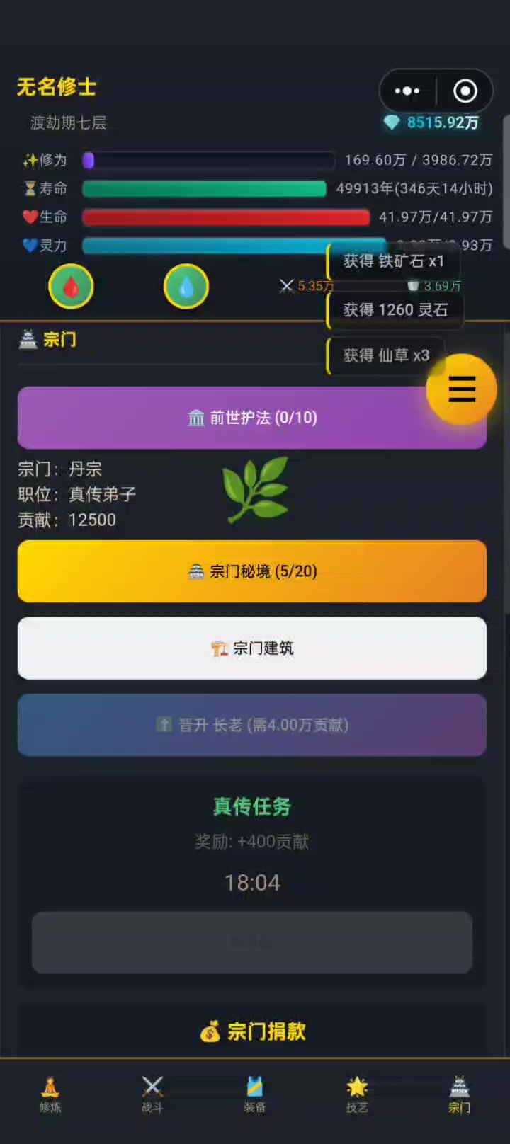 #修仙 真的很解压,闲来没事当个消遣时光的小游戏,不占内存,游戏设定挺有意思的,上下班途中坐在公交车上打开玩一玩,突然就到站了。[表情_吃瓜][表情_吃瓜]