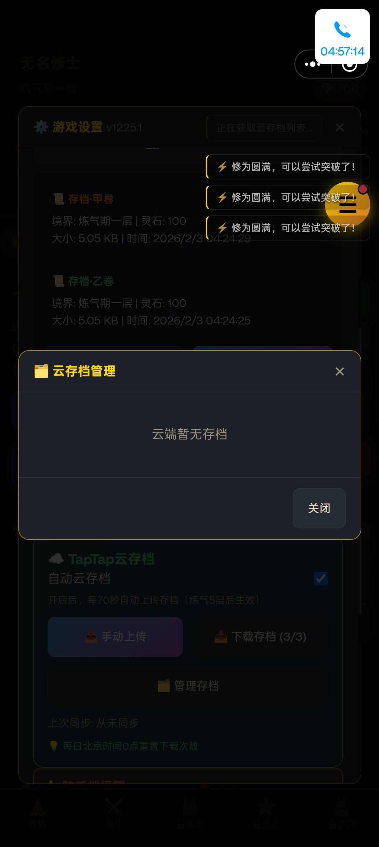 因为TapTap更新了一堆东西,导致TapTap存档出错了,删除TapTap,重新下载。进入游戏,点击设置下载存档就行。尽量不要点突破,如果你要找回存档