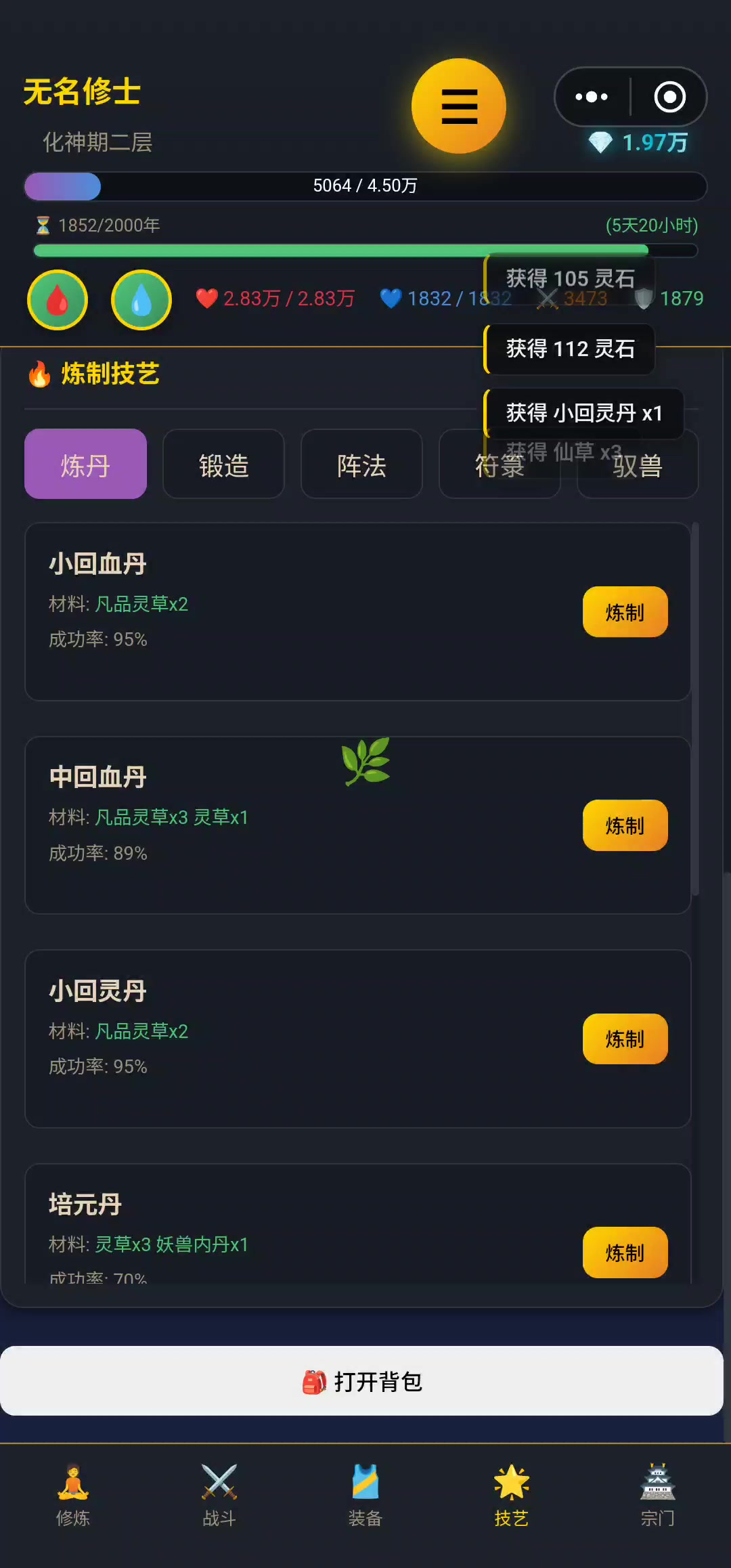 无聊可以打发时间,后期一直吃培元丹就好,希望后续能出更多玩法!