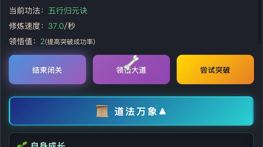 根据本人反复删除存档重开及交流群道友技巧综合,这是本人第一次写攻略,如有不当之处欢迎各位道友指出,希望各位道友多多包涵1.灵根 开局选灵根 重随出金天灵根(金单属性灵根且大于90)再开局,金天灵根加百分比攻击力,且修炼场所筑基期便开放2.修炼 闭关、战斗、秘境、试炼塔、吃培元丹都可以获取修为,前期闭关+战斗可以快速升级,中期试炼塔+磕丹,后期刷地图的boss和推塔3.功法 直接