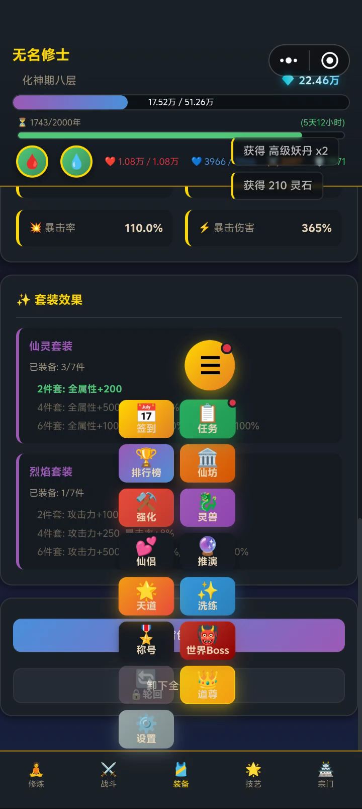 #修仙 真的很解压,闲来没事当个消遣时光的小游戏,不占内存,游戏设定挺有意思的,上下班途中坐在公交车上打开玩一玩,突然就到站了。[表情_吃瓜][表情_吃瓜]