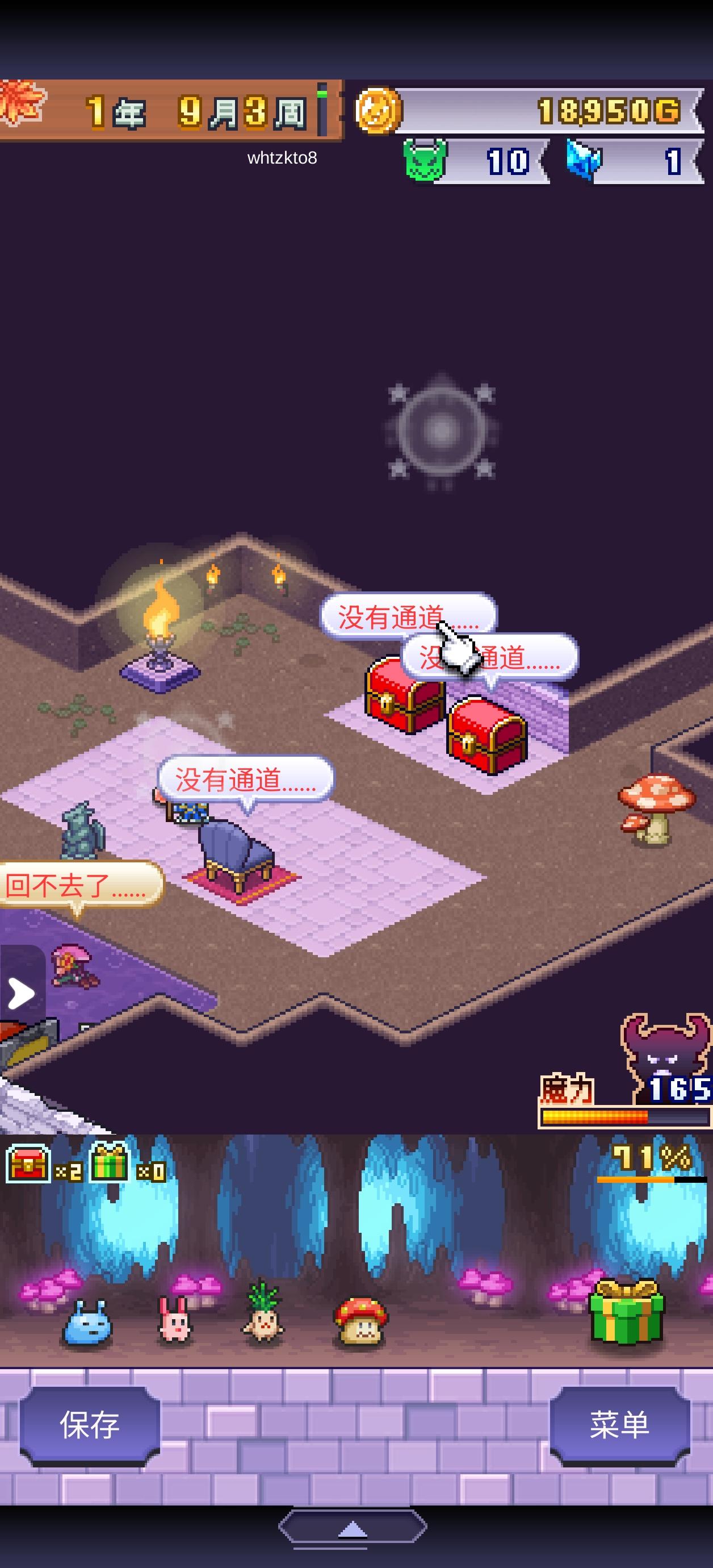 一款不需要动脑子但是挺累的打怪类开罗游戏,累在要不断继承重开档,因为每结算一次会多给一个开罗雕像+多继承一个新魔物。这是第二款能让我重开档的开罗游戏,第一款是初代赛车物语,当时是为了爆金光改造零件。因为我不玩陷阱流,所以布局最重要的就是多分房间、多造岔路。每个关键节点房间放一只大佬,虽然冒险者会乱走导致没法靠一只拦下所有,但每一个跟它对上眼的孩子都活不过一集,这就很好。虽然后期冒险者人数巨多,但