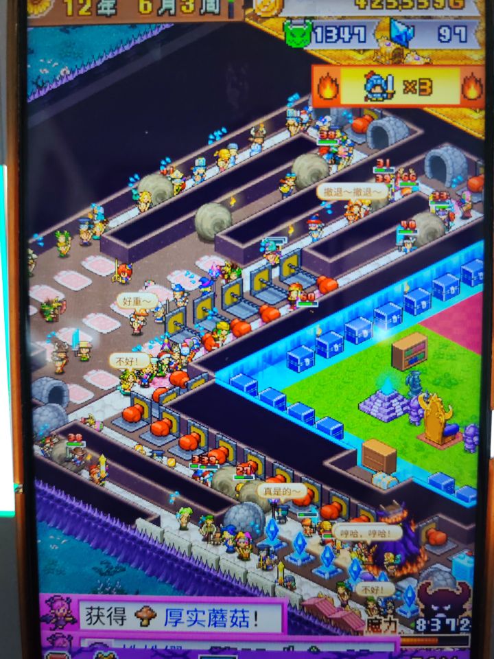 一款不需要动脑子但是挺累的打怪类开罗游戏,累在要不断继承重开档,因为每结算一次会多给一个开罗雕像+多继承一个新魔物。这是第二款能让我重开档的开罗游戏,第一款是初代赛车物语,当时是为了爆金光改造零件。因为我不玩陷阱流,所以布局最重要的就是多分房间、多造岔路。每个关键节点房间放一只大佬,虽然冒险者会乱走导致没法靠一只拦下所有,但每一个跟它对上眼的孩子都活不过一集,这就很好。虽然后期冒险者人数巨多,但