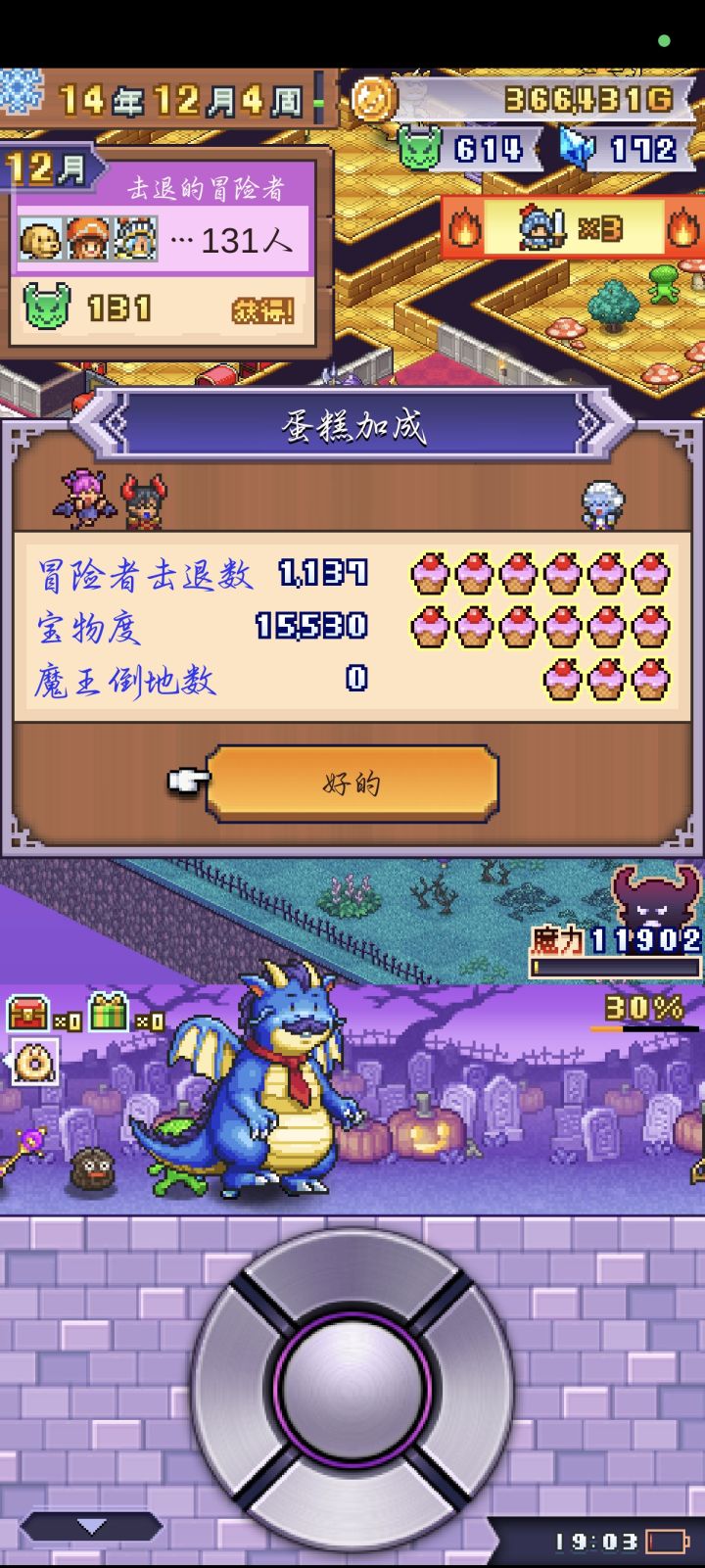 内容太少了,越到后面越无聊,除了前期发育的时候感觉有新意,后面冒险者实在太多了,排成串不间断,你单上魔物100%不可能打过的(因为不是有怪物在那里,后面的冒险者就进不来,一个怪只能应对几只,其他的全部跑到后面去了),只能玩陷阱。所以一点怪物养成体验都没有,前期喂食品属性加的少,后期每次清空商店就能喂两三百个道具。那个魔王更是没做,纯摆设来的,只有前期能扛个几年,后面只能关在房间(因为魔王不能给道具