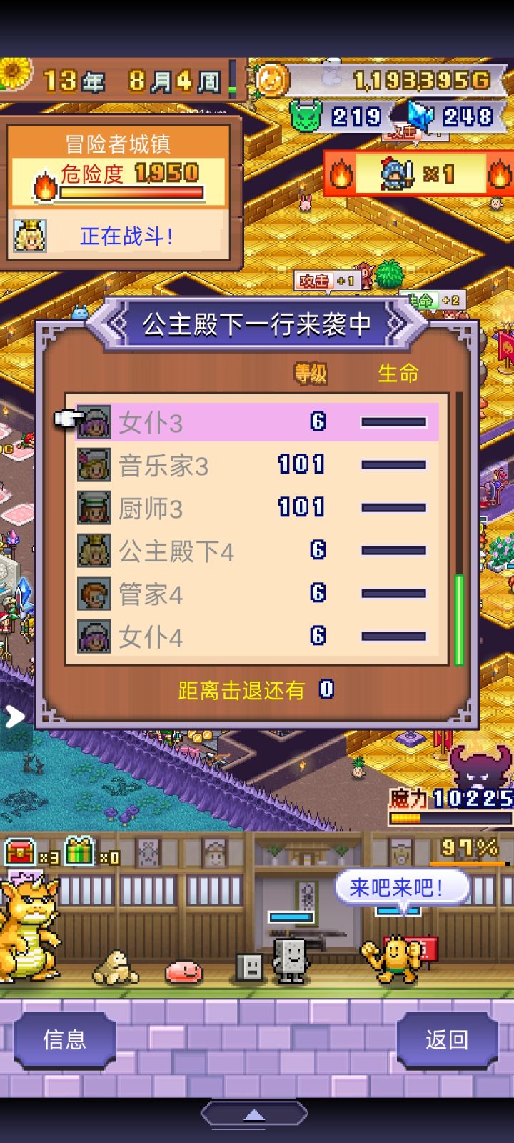 一款不需要动脑子但是挺累的打怪类开罗游戏,累在要不断继承重开档,因为每结算一次会多给一个开罗雕像+多继承一个新魔物。这是第二款能让我重开档的开罗游戏,第一款是初代赛车物语,当时是为了爆金光改造零件。因为我不玩陷阱流,所以布局最重要的就是多分房间、多造岔路。每个关键节点房间放一只大佬,虽然冒险者会乱走导致没法靠一只拦下所有,但每一个跟它对上眼的孩子都活不过一集,这就很好。虽然后期冒险者人数巨多,但