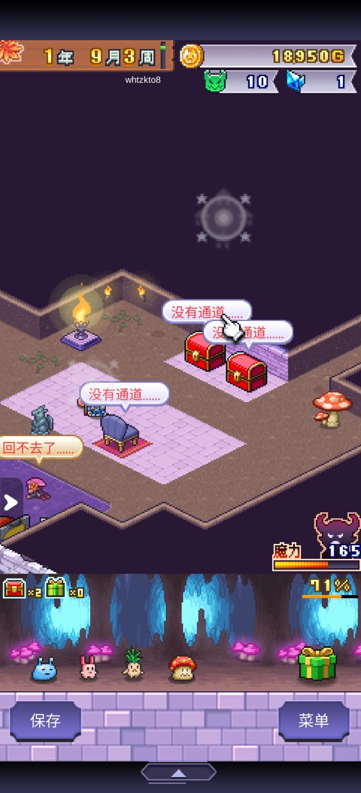 内容太少了,越到后面越无聊,除了前期发育的时候感觉有新意,后面冒险者实在太多了,排成串不间断,你单上魔物100%不可能打过的(因为不是有怪物在那里,后面的冒险者就进不来,一个怪只能应对几只,其他的全部跑到后面去了),只能玩陷阱。所以一点怪物养成体验都没有,前期喂食品属性加的少,后期每次清空商店就能喂两三百个道具。那个魔王更是没做,纯摆设来的,只有前期能扛个几年,后面只能关在房间(因为魔王不能给道具