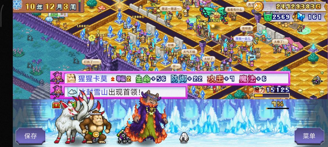 这就是最终布局[表情_微笑]无论普通还是困难都通用,初期中后期全部可用,怪物属性通过买东西吃还有探索合成来增加,初期主升3个怪,其余各宫把空地怪物铺满,谁也冲不到魔王面前[表情_开心]